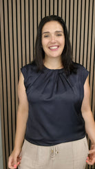 Sera Satin Sleeveless Top Navy