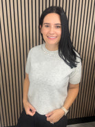Shelby grey bling knit jumper short sleeve