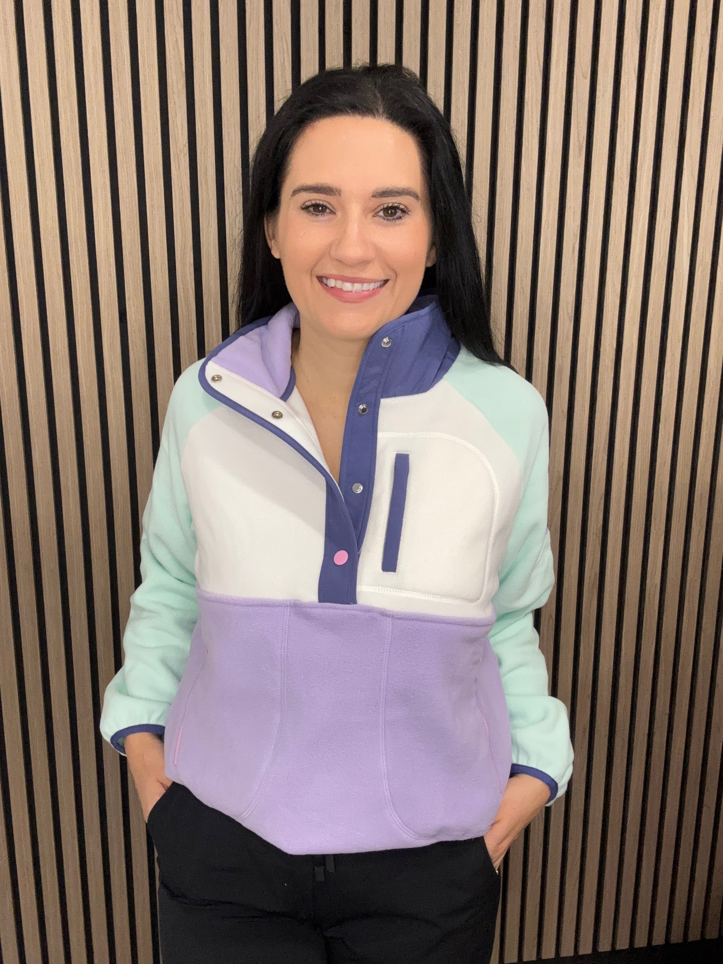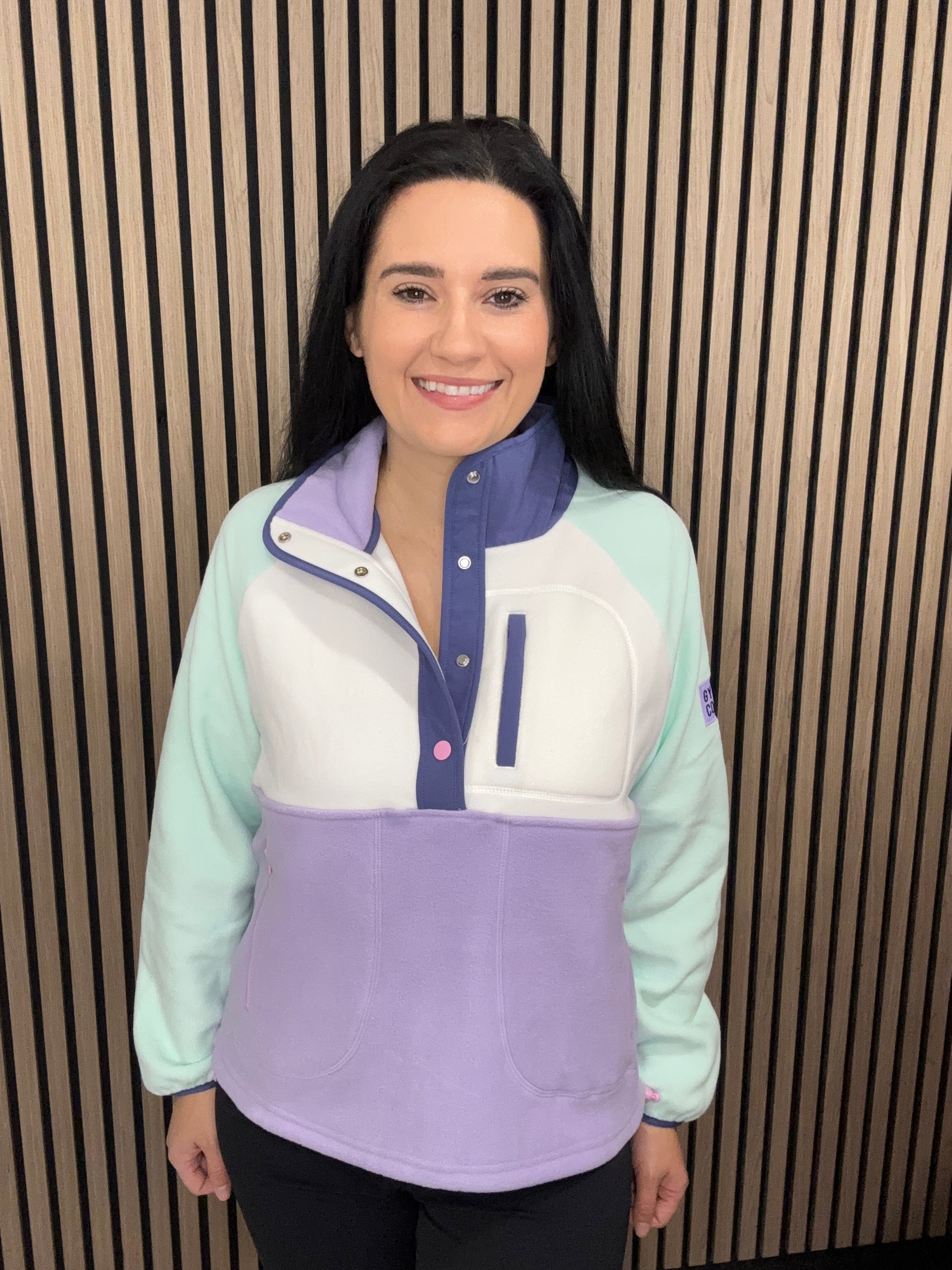 Pastel made practical. Soft tones, effortless energy—the Snap Polar Fleece in Lilac and Mint is the easy midlayer you’ll reach for on repeat. Calming in colour and cosy in feel, it’s made to move with you: throwed on after Pilates, styled with your favourite jeans, or layered with leggings for a weekend hike.