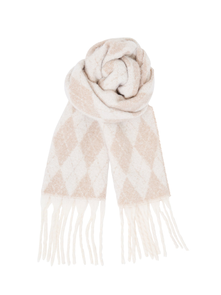Our Supersoft Diamond Check Scarf makes a soft and chic statement. This patterned scarf features diamond checks across its body complete with playful fringe detailing.