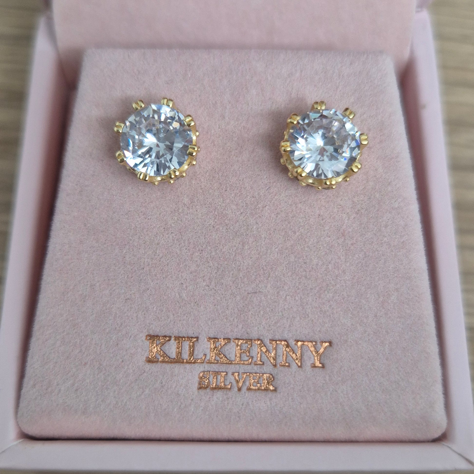 YELLOW GOLD ROUND CRYSTAL STUD EARRING